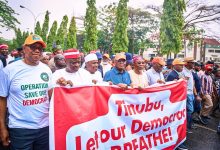 PHOTOS: Obi, Mark, Kwankwaso lead ADC protest at INEC headquarters